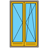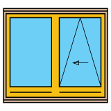 Классический тип пластиковых окон для стандартных оконных проемов. Одна створка поворотная, вторая поворотно-откидная, но створки имеют разную ширину.